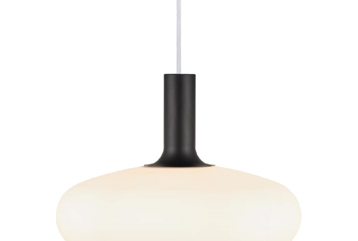 A gama Alton oferece uma bela coerência entre o vidro opalino branco simples e a forma arredondada, criando uma expressão elegante e clássica. Inclui um topo em metal preto mate, que confere ao candeeiro um visual clássico e minimalista. A combinação do vidro opalino branco com o metal preto mate resulta numa expressão de design moderna e sofisticada.
