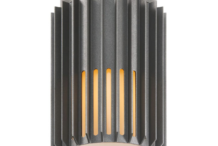 Desi é uma luminária de parede elegante e simples, útil para pendurar em toldos de portas, em alvenaria exterior ou no telheiro. O tom mate suaviza a luz e evita o encandeamento.