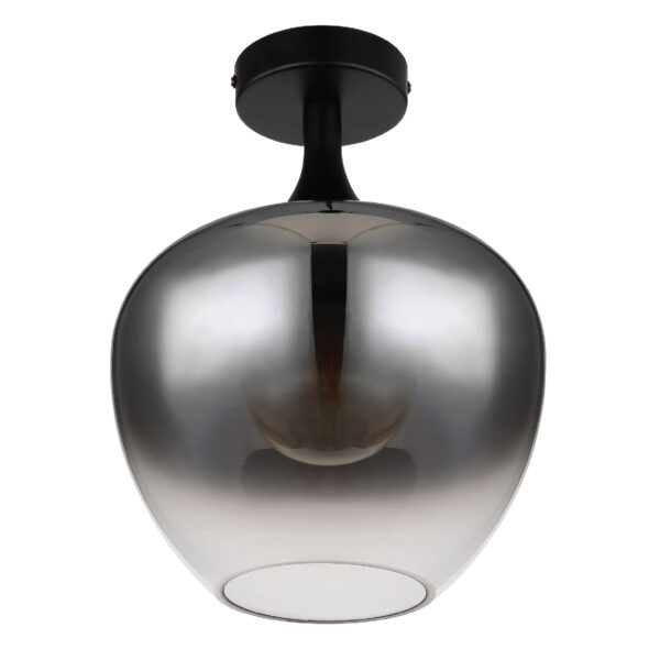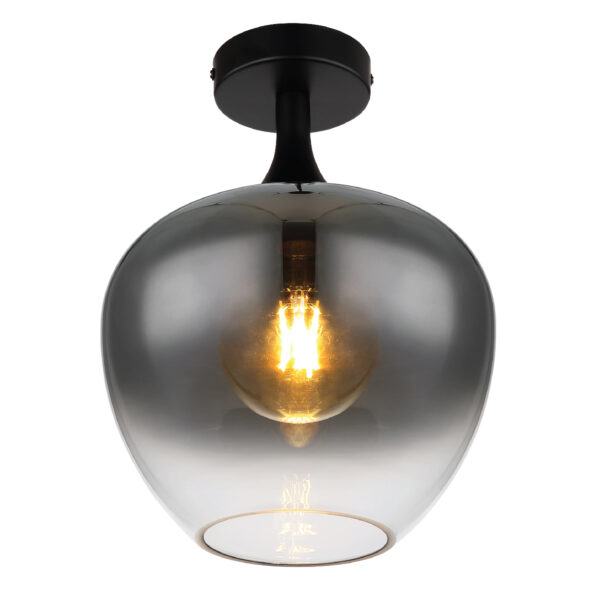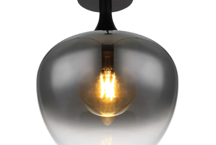 Este candeeiro de teto moderno inspira com um design fantástico. Num suporte de teto redondo em preto mate, encontra-se um casquilho E27 com um abajur de vidro cor de fumo (Ø 24 cm). O casquilho E27 permite-lhe determinar a sua própria cor de luz e brilho até uma potência máxima de 40 watts. Devido à longevidade e à poupança de energia, recomendamos as lâmpadas LED.