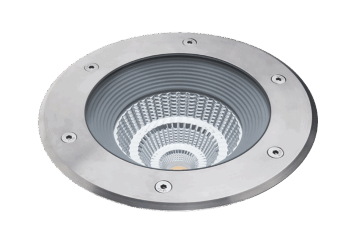 Projetor de pavimento em aço inóxidavel. As várias formas disponíveis são a solução perfeita para a iluminação de percursos e passagens em segurança e em ofuscamento dos transeuntes.
